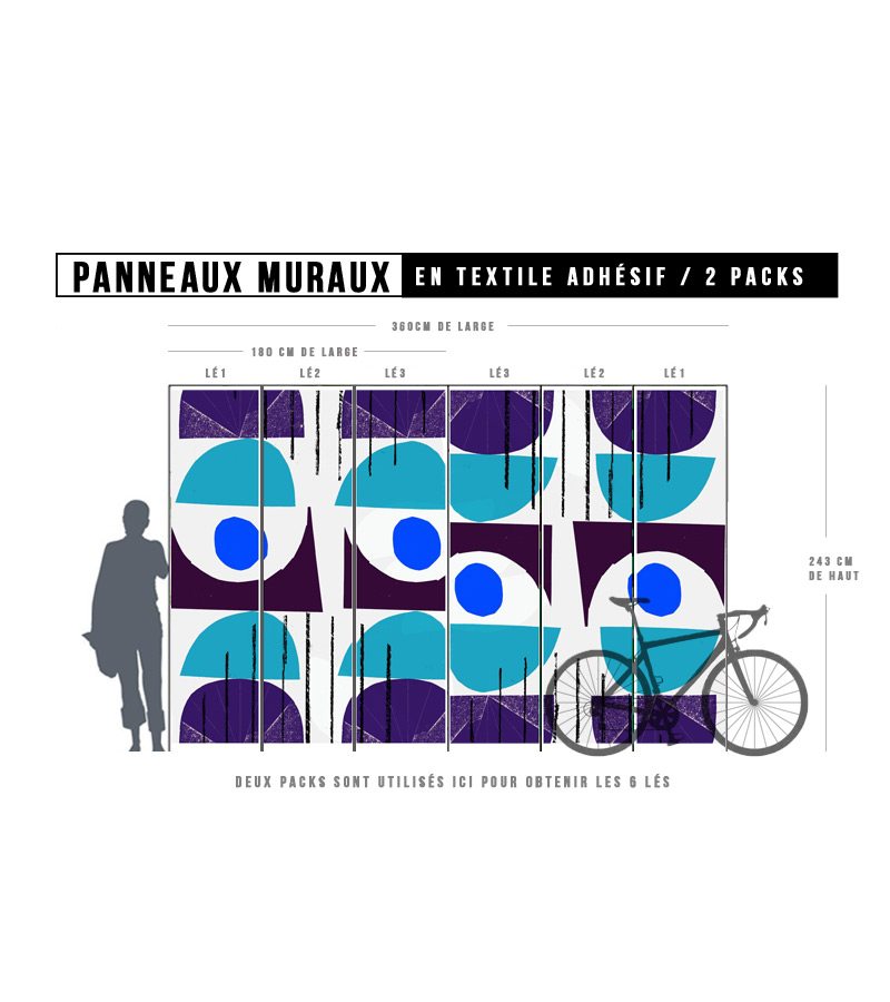 En combinant deux Packs, vous pourrez couvrir un mur sur toute sa hauteur et réaliser une fresque de 2,40m de haut par 1,20 m de large, sans aucun raccord visible!