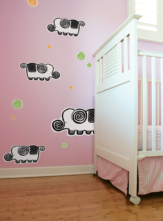 Ce pack contient 4 éléphants et 23 spirales! Au total 27 stickers muraux pour créer et re-créer votre décor comme bon vous semble.