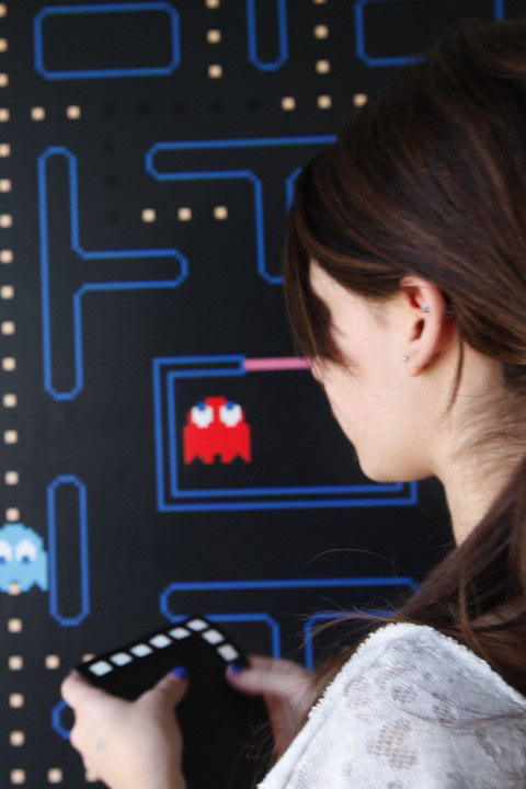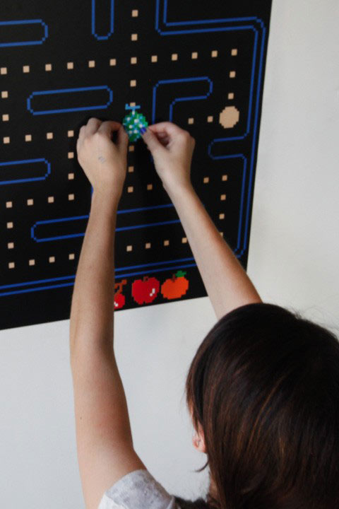 Gardez vos pièces et faites entrer chez vous un écran virtuel du jeu vidéo d'arcade le plus populaire au monde. Construisez votre propre parcours en appliquant des caches au dessus des points avalés au passage de PacMan et placez fantômes et fruits ou bon vous semble!