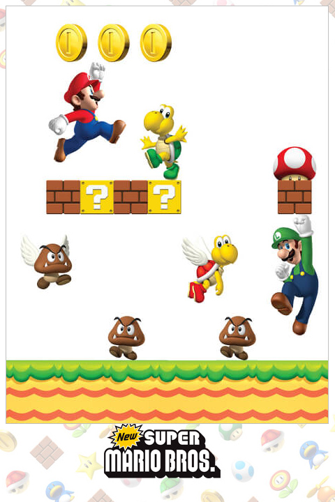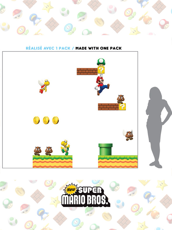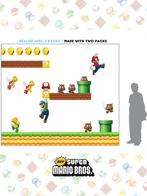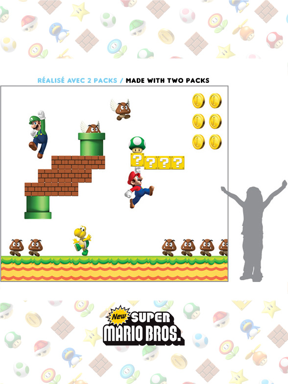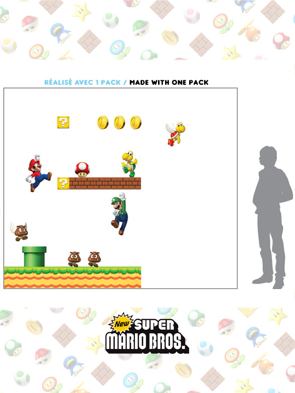 Créés à partir des personnages du jeu sur Nintendo DS, ces Stickers New Super Mario Géants vous feront plonger au coeur même du jeu en retrouvant tous les personnages cultes de l'univers Nintendo sur vos murs!