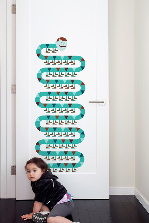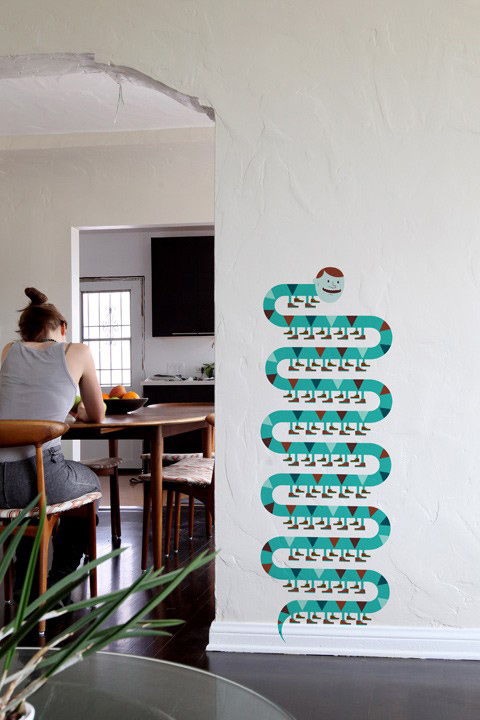 Découvrez le monde étrange et enchanté des collages de Jim Houser avec ce sticker mural 'serpent à pattes'.